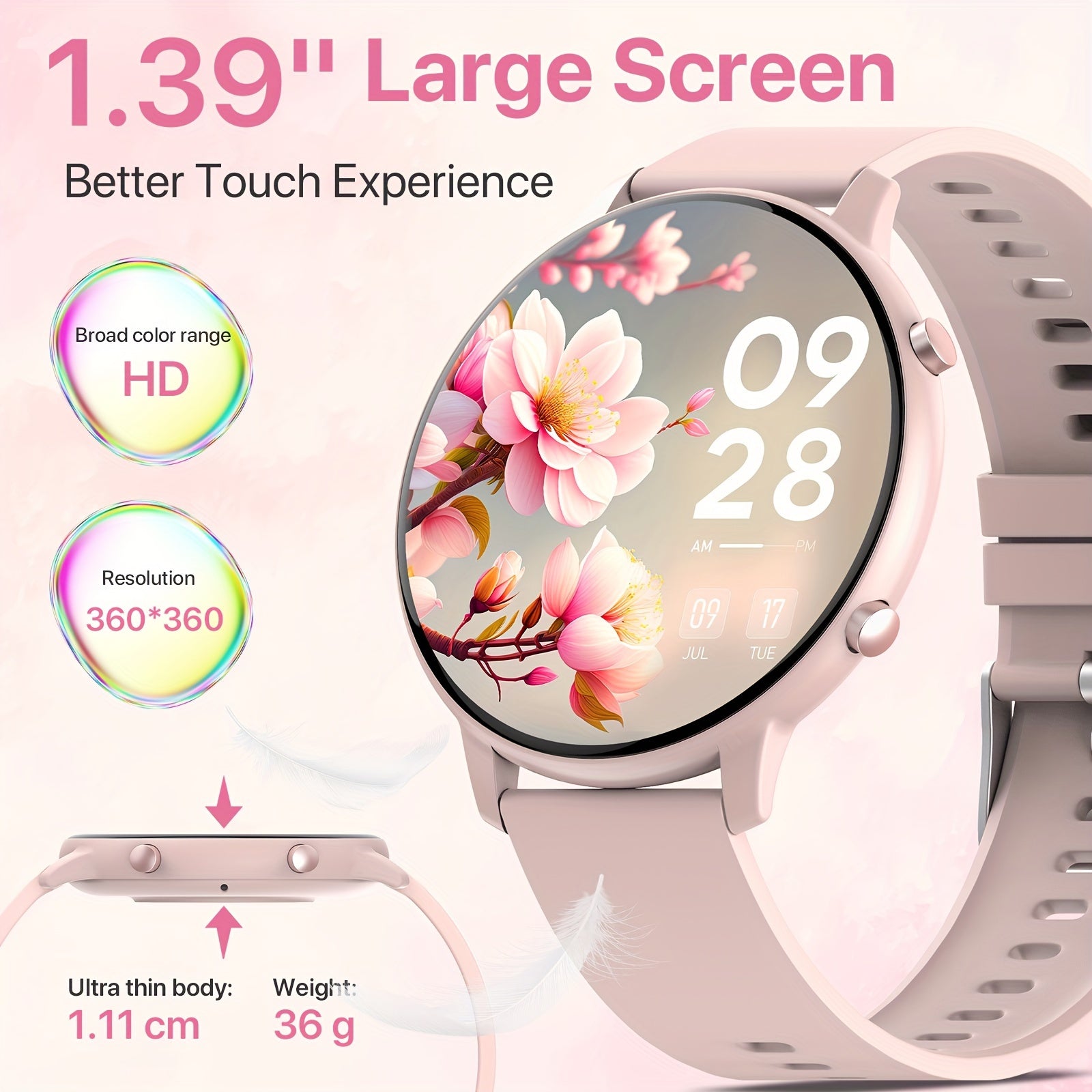 1.39-inch Women's Smart Watch with Full Touch Screen, Make/Receive Calls, Message Push, Fitness Tracker, Pedometer, 100+ Sports Modes for iPhone/Android Phones