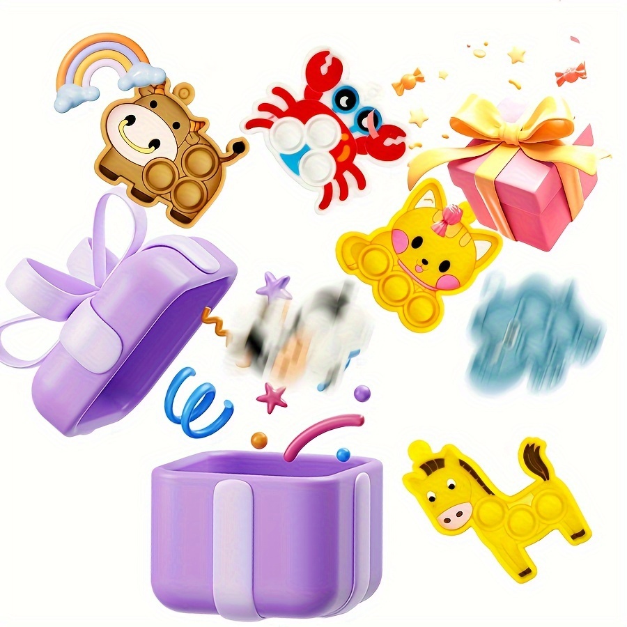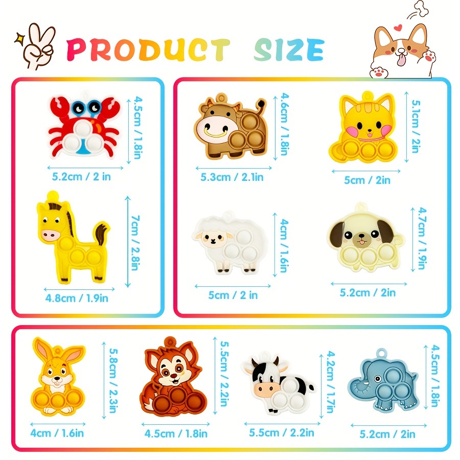 10-Pack Animal Pop Fidget Toy Keychains - Silicone Bubble Popping Toys for Kids Ages 3-6, Party Favors for Birthday, Christmas, Halloween Gifts