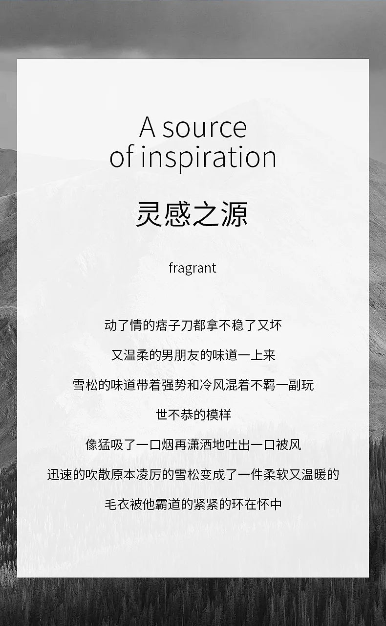 Spicy Woody Perfume: Top - Carrot Seeds, Oakmoss, Sandalwood; Heart - Orange, Musk, Agarwood, Cypress; Base - Cedrus, Bergamot, Cardamom, Leathery