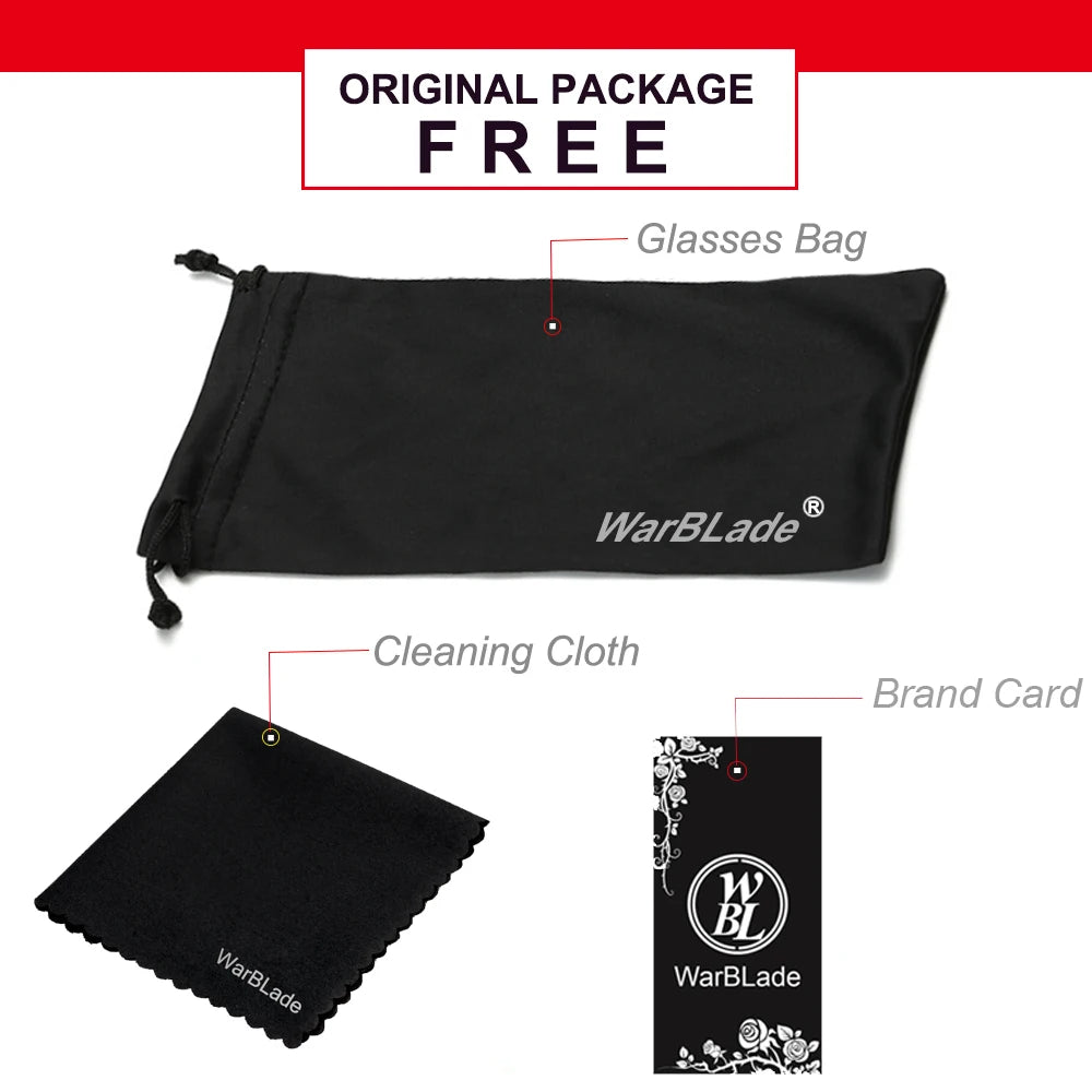 Package: 1 Glasses, 1 Pouch, 1 Cleaning Cloth, 1 Brand Card