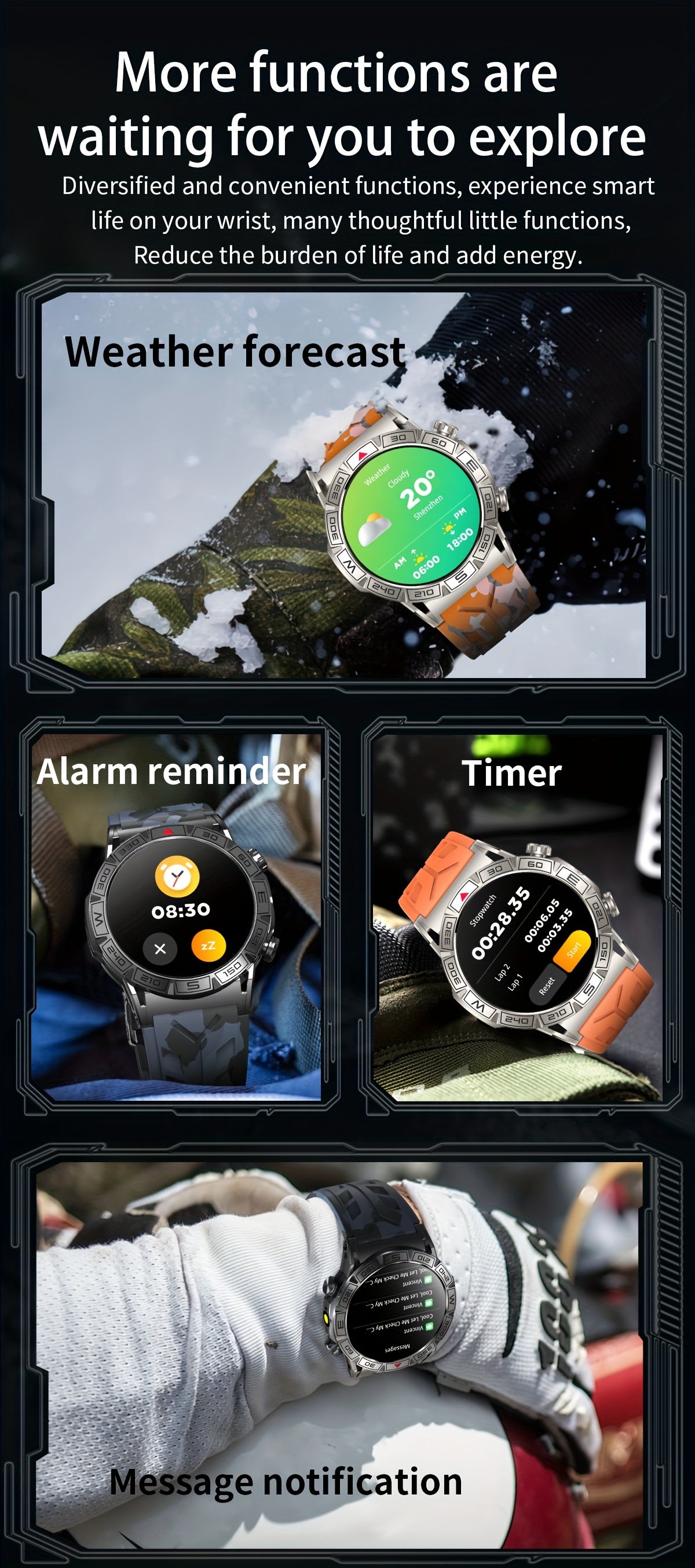 2024 New Outdoor Sport Smart Watch Men Women 1.43" AMOLED 450mAh Battery Wireless Calls SMS Notification Monitoring GPS Track+Altitude+Barometric Pressure+Compass+Flashlight Smart Watches For Android Iphone