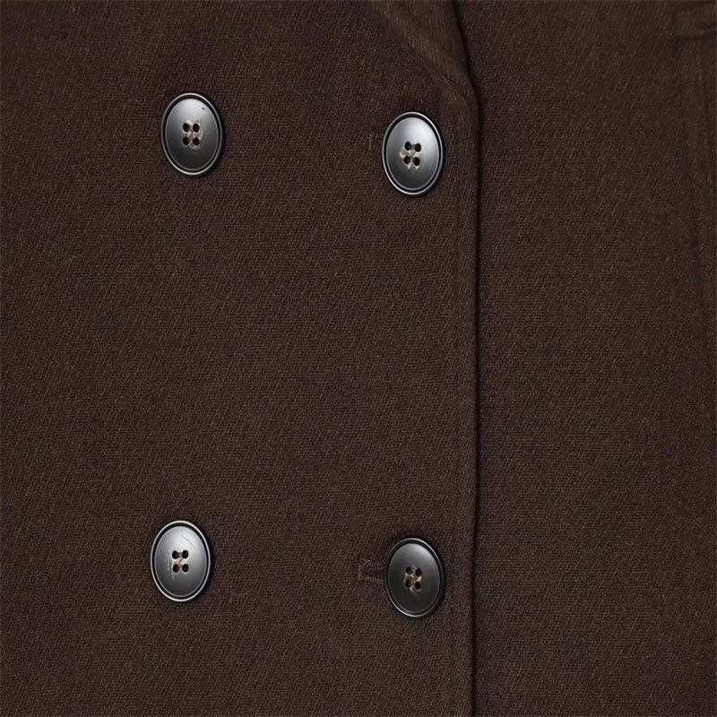 2025 Autumn Women's Urban Fashion Classic Dark Brown Double-Breasted Short Coat