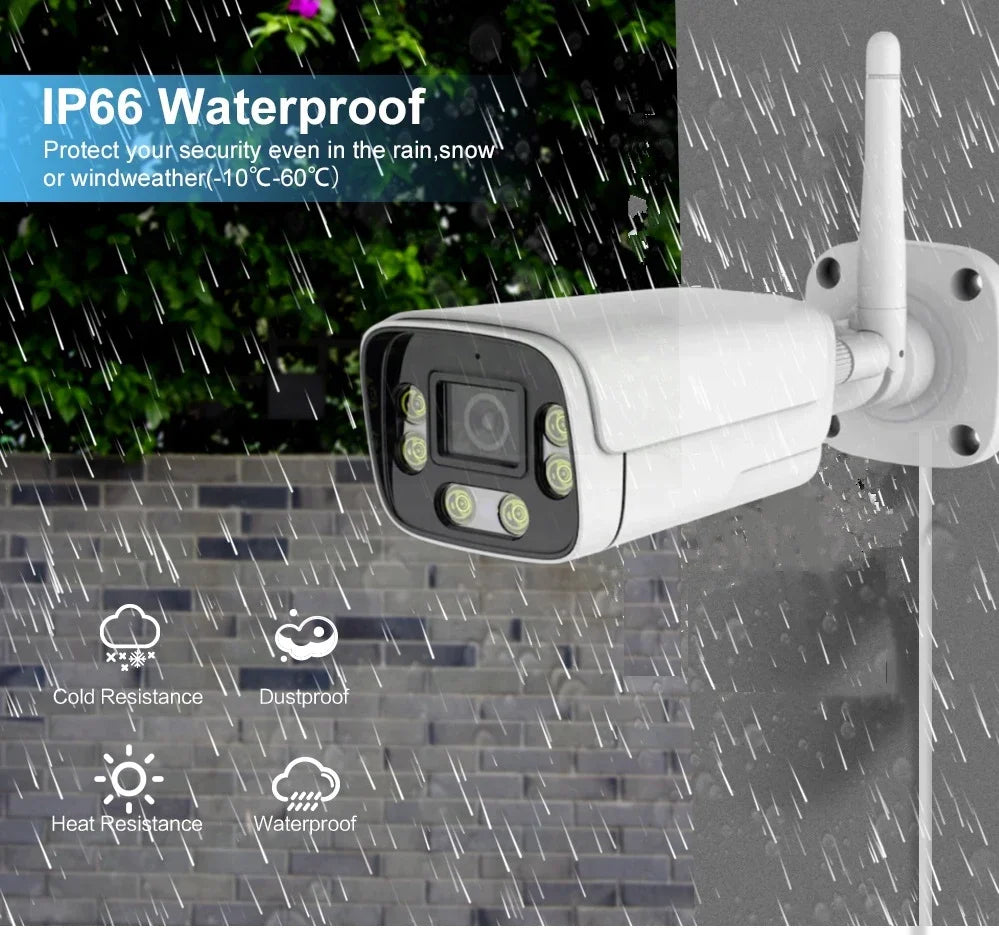 This upgraded 4MP WiFi security camera works with 2.4G WiFi, supports 2-way Audio, Humanoid Motion Detection Alarm push , Remote Access, Smart IR-Cut Day & Night, IP66 Weatherproof, Easy to install, etc. Idea IP camera to protect your house indoor and outdoor.