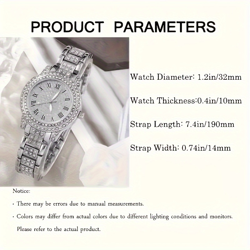 6 Pcs Silvery Quartz Watches Zinc Alloy Strap Zinc Alloy Pointer And Jewelry Perfect Gifts For Valentine's Day Easter Ramadan Gifts For Eid