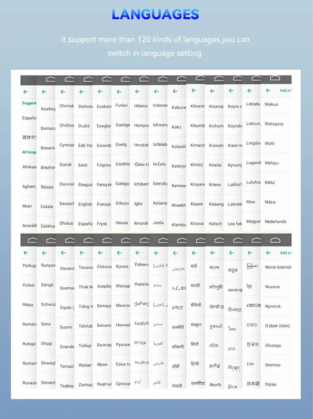OSD Language: Chinese (Simplified),Chinese (Traditional),albanian,Arabic,Azeri,Irish,ESTONIAN,Belarusian,Bulgarian,Icelandic,Polish,PERSIAN,Boolean text (Dutch South Africa),Danish,German,Russian,French,Filipino,Finnish,Georgian,Haitian Creole,Korean,Dutch,Galicia,Catalan,czech,Croatian,Latin,Latvian,Lithuanian,Romanian,Maltese,Malay,Macedonian,Norwegian,Portuguese,Japanese,Swedish,Serbian,Slovak,Slovenian,Swahili,THAI,Turkish,Welsh,Ukrainian,Hebrew,Greek,Spain's Basque,Spanish,hungarian,Armenian,Italian,Yiddish,hindi,Urdu India,indonesia,English,Vietnamese