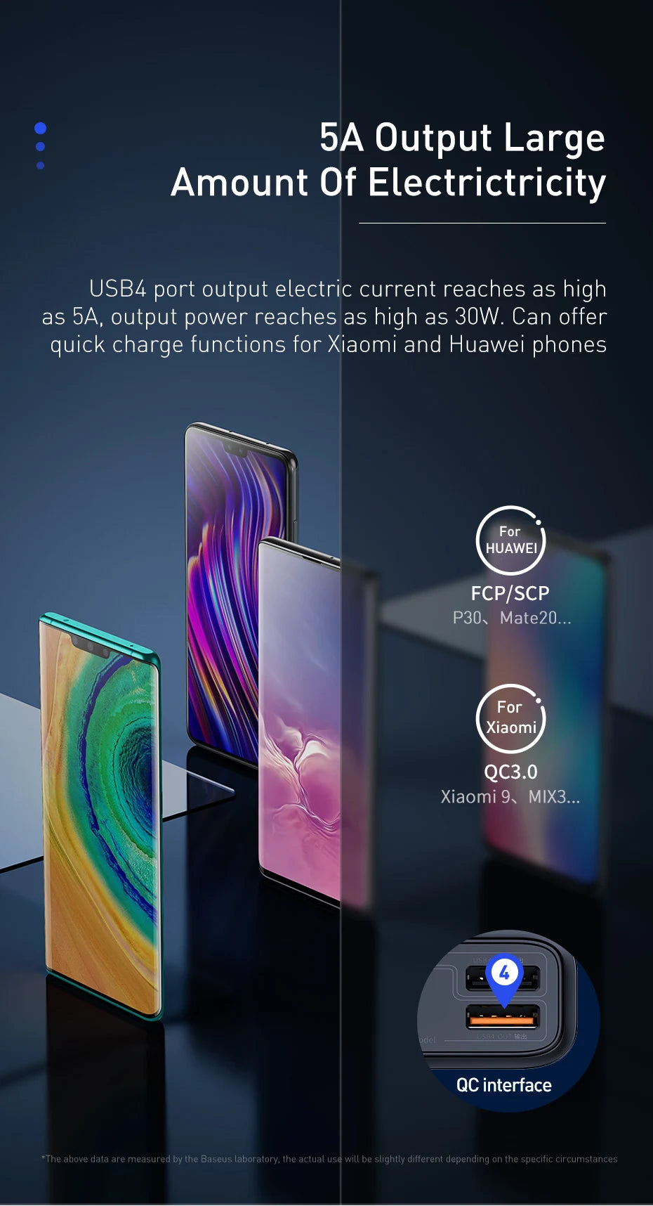 USB 4 Output: About 5V/4.5A,4.5V/5A,5V/3A,9V/3A,12V/2.5A,20V/1.5A 30W