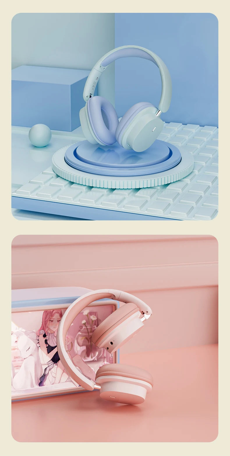 Bluetooth 5.3 Fashion Wireless Headphones HIFI Stereo Portable Over-ear Business Headset Low Latency Gaming Earphones With Mic