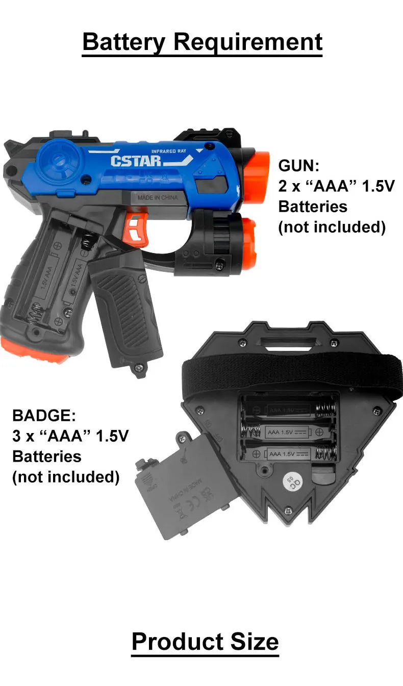Packing list: 2 x Laser Tag battle guns + 2 x vibration badges