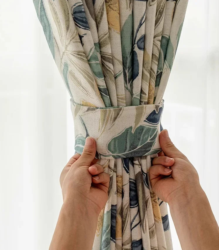 Curtains for Living Dining Room Bedroom Autumn Maple Leaves American Country Pastoral Retro Cotton Linen Thick Korean Style