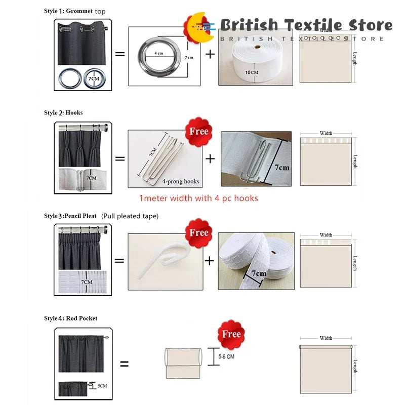 Curtain Width: 1.5~2times of the window width