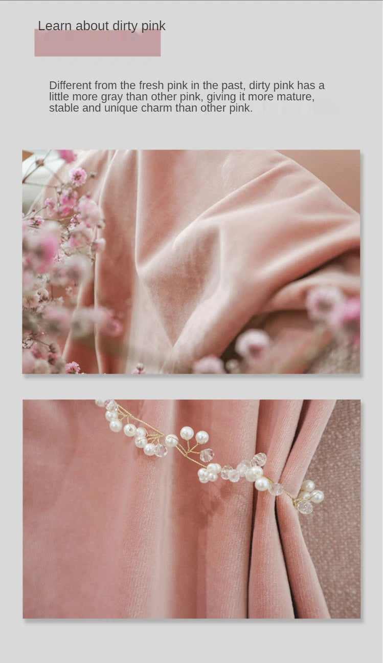 Curtains for Living Room Bedroomt Dirty Pink Curtains Light Luxury Velvet Light-Shielding Flannel Minimalist Curtain Fabric