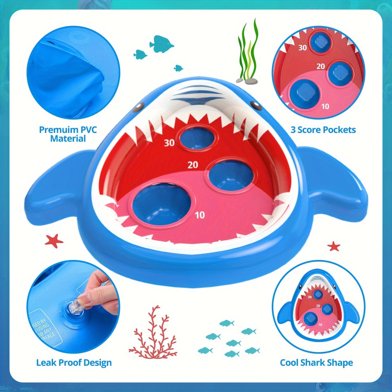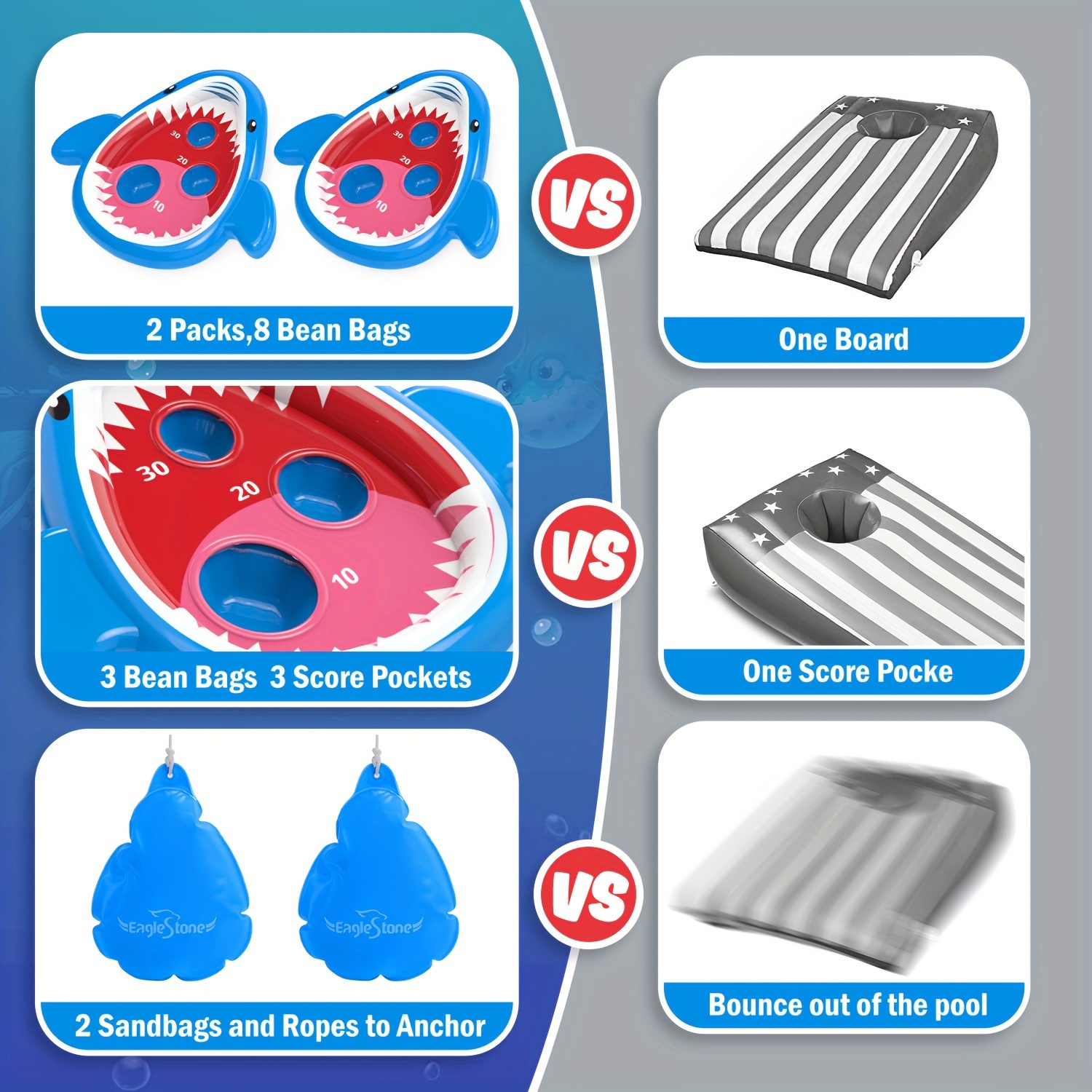 Eaglestone 2pcs Pool Shark Cornhole Toys For Kids, Inflatable Swimming Pool Toys For Adults Family, 8 Bean Bags Toss Game W/Sandbag Anchor, Floating Outdoor Beach Toys For Pool Game Party, Water Toy