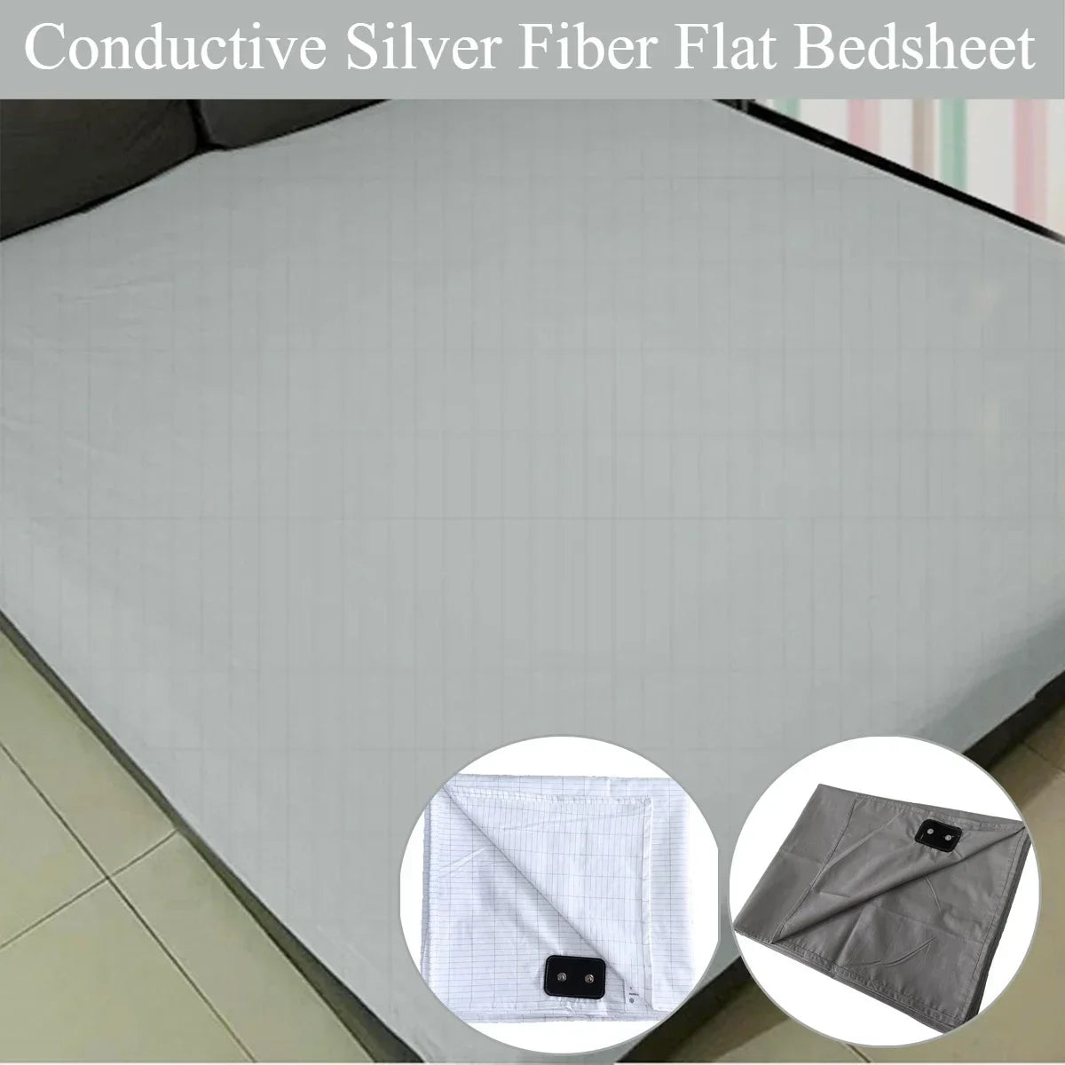 1PC Conductive Silver Fiber Flat Bedsheet with Earthing Cord Antistatic Health Protection Sheet Grounded Improvement Sleep ์ํธ