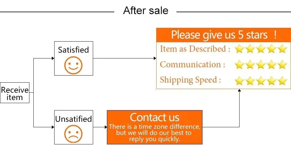 Please contact us firstly if you are not satisfied with the item when received, we will offer you a satisfactory solution before your leave any feedback or dispute, Thanks for your kind understanding!