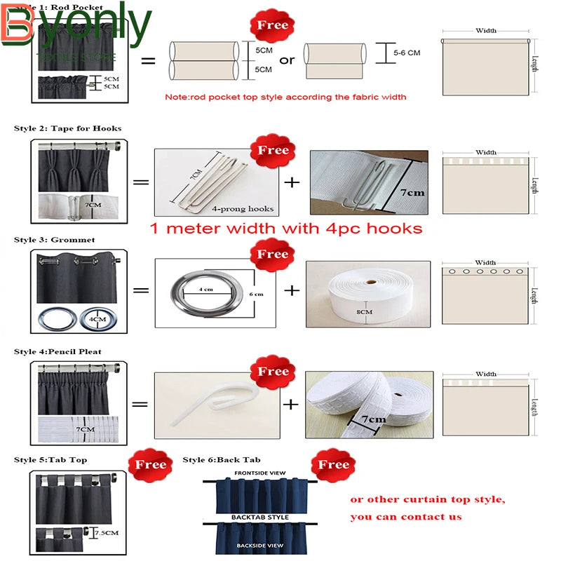 Curtain Width: 1.5~2times of the window width
