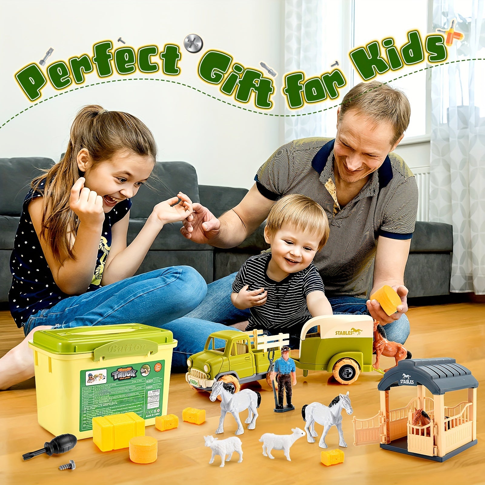 Farm Animal Toys For Kids, Truck Toys Boys Building Stem Toys For Boys Ages 3-9 Farm Toys With Horse, Lamb For, Perfect Girls Boys Birthday&back To School Gifts