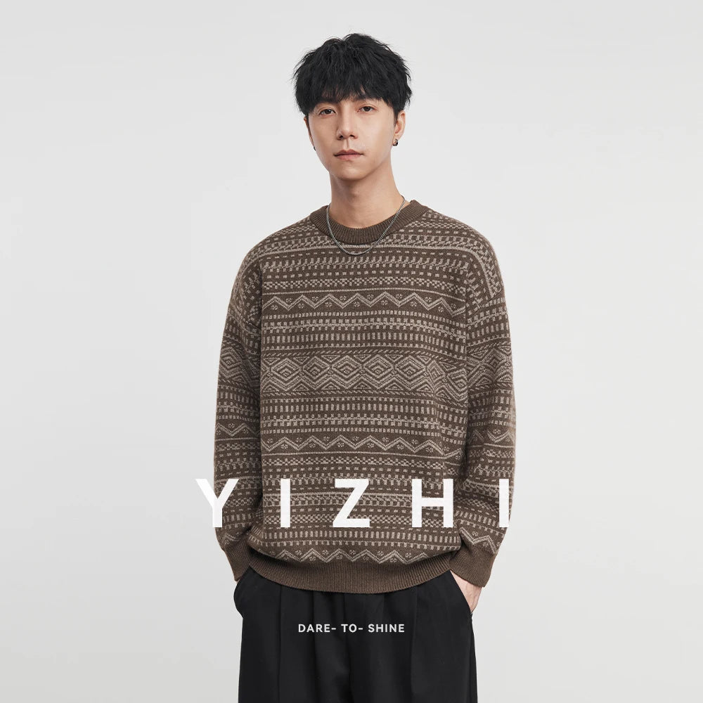 Fashion Men's Knitwear 2025 Autumn Winter New Season Lazy Fair Isle Contrast Retro Loose Crewneck Sweater Pullover