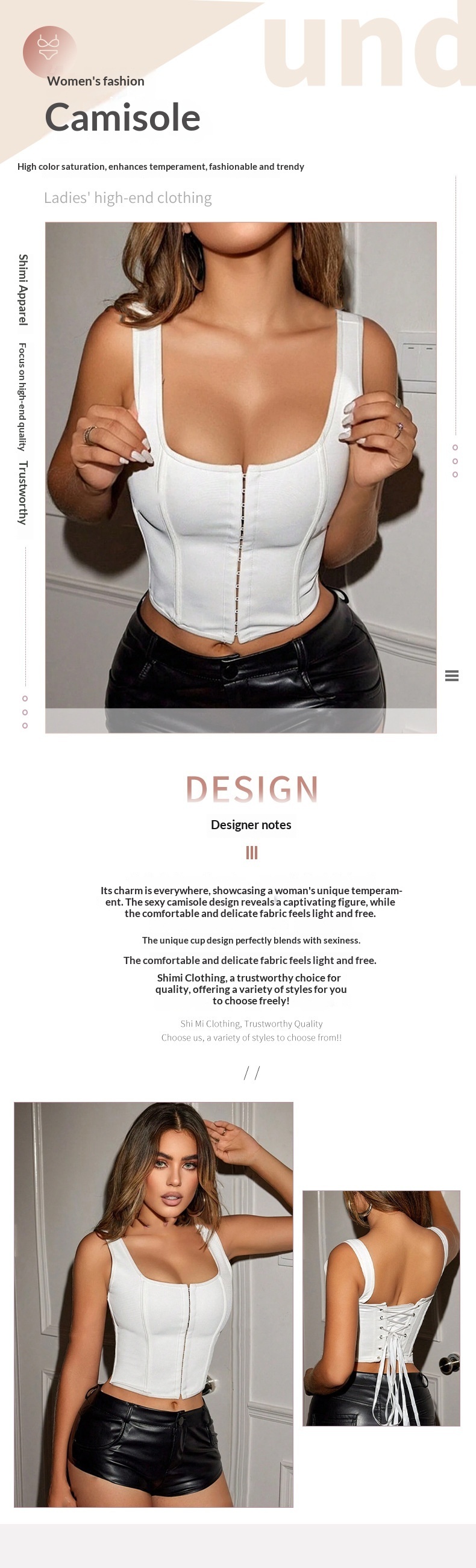 Fashionable Inner Top With Invisible Snap Buttons