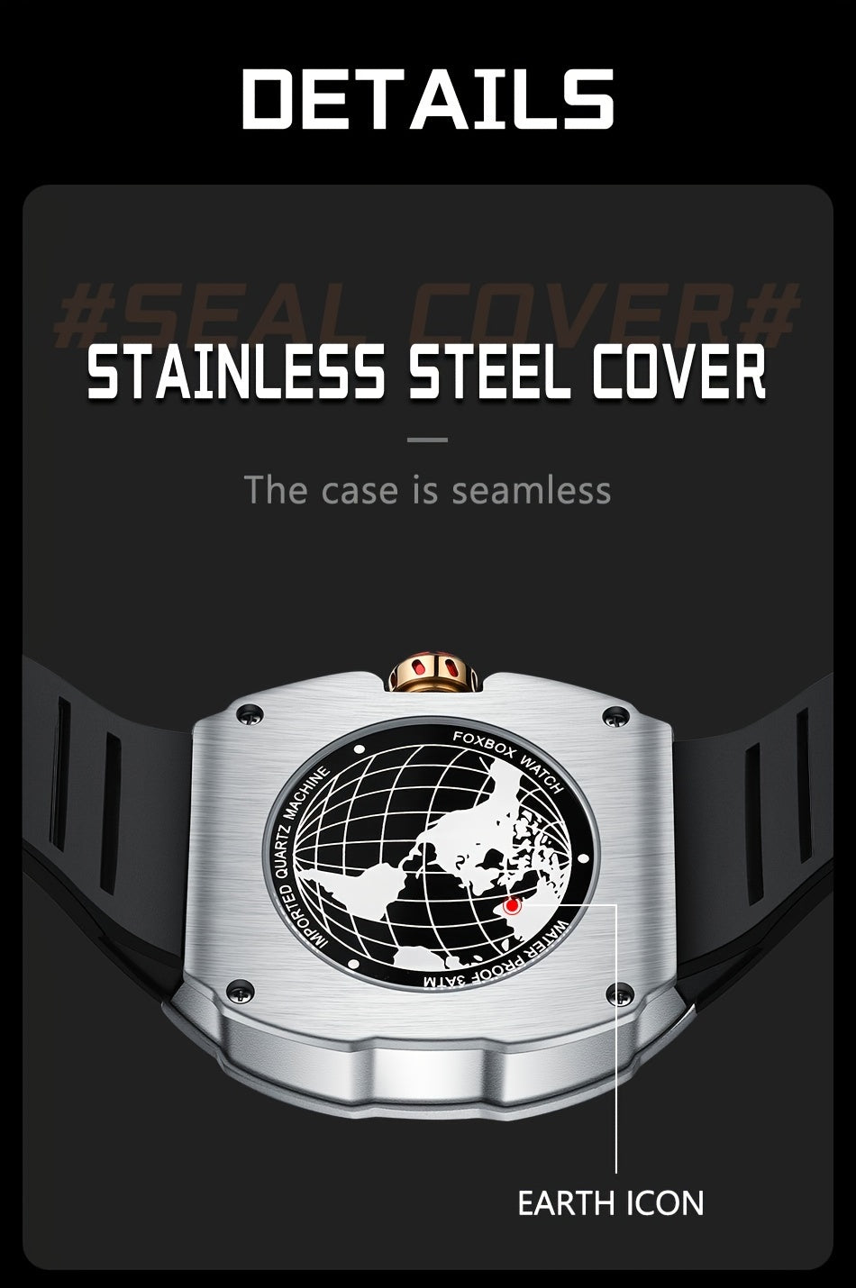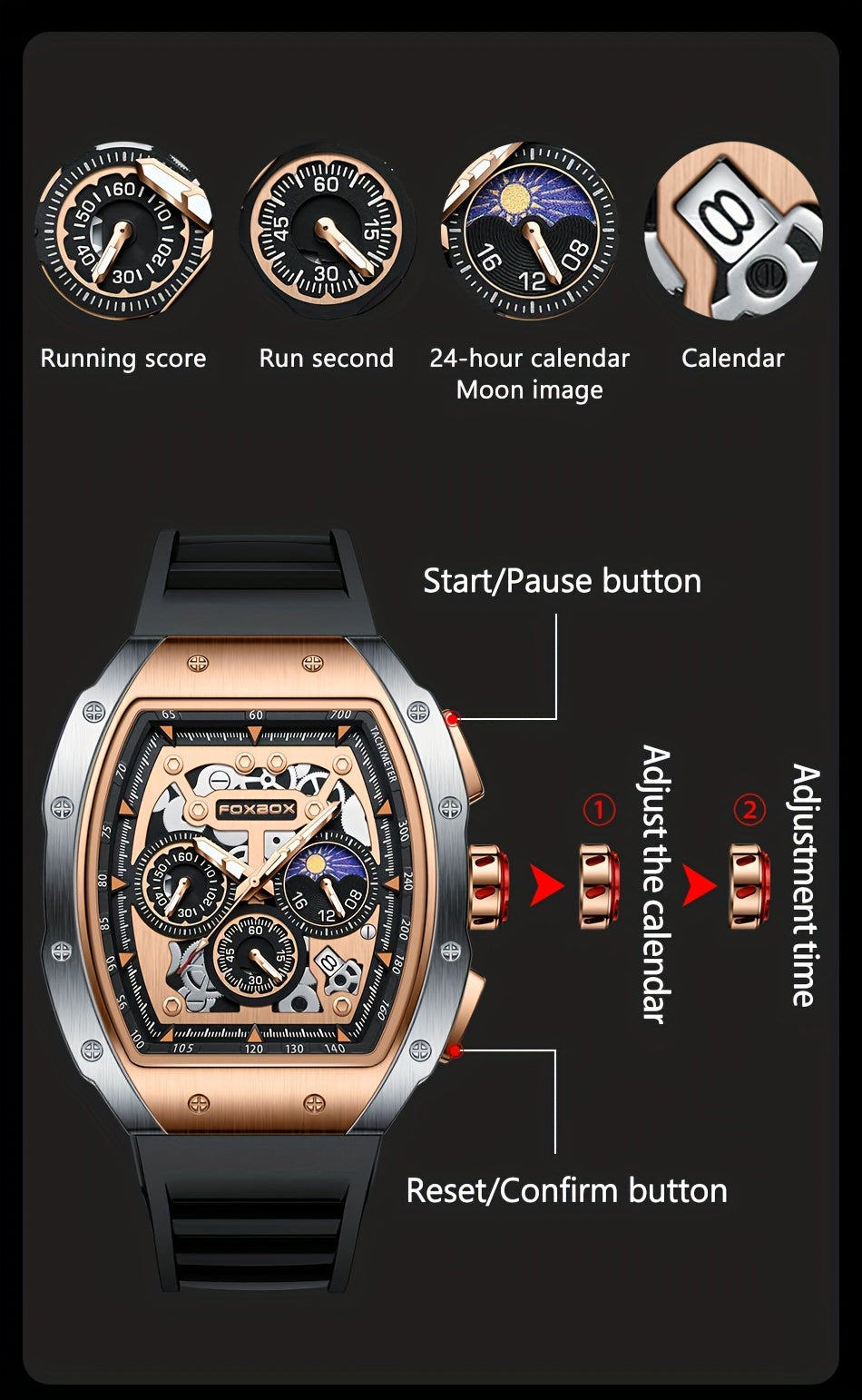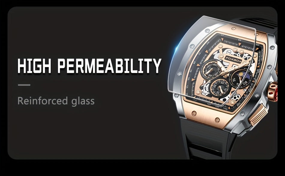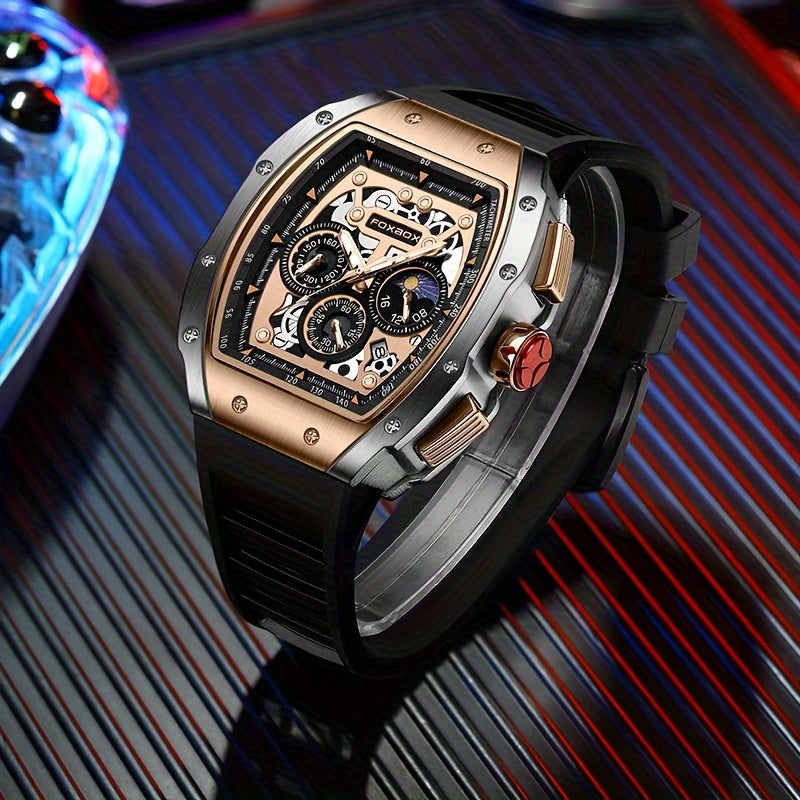 Foxbox Men's Waterproof Quartz Wristwatch, Date Sport Silicone Wrist Watches