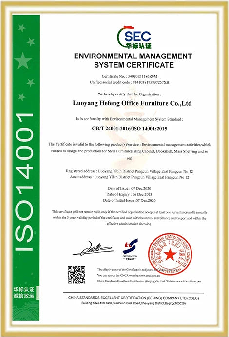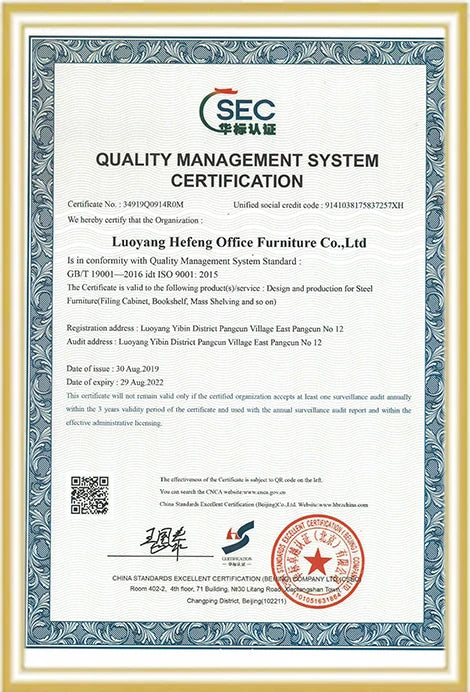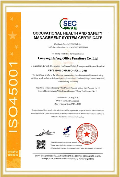Luoyang He Feng Office Furniture Co., Ltd is one of the biggest Chinese metal furniture supplier. It was founded in 1995 and located in Luoyang, Henan province. Our main products including Filing Cabinet, Steel Locker, Pedestal Cabinet, Office Desk, Storage Shelves/Rack, Steel Bed, Tool Cabinet, Stainless Steel Series, and Other Related Products etc. The factory now covers an area of 50,000 square meters and has 8 medium workshops and 3 automatic powder coating lines. With these advanced technology, our products are quality-constant in mass production and the monthly output reaches to 45,000 pieces.