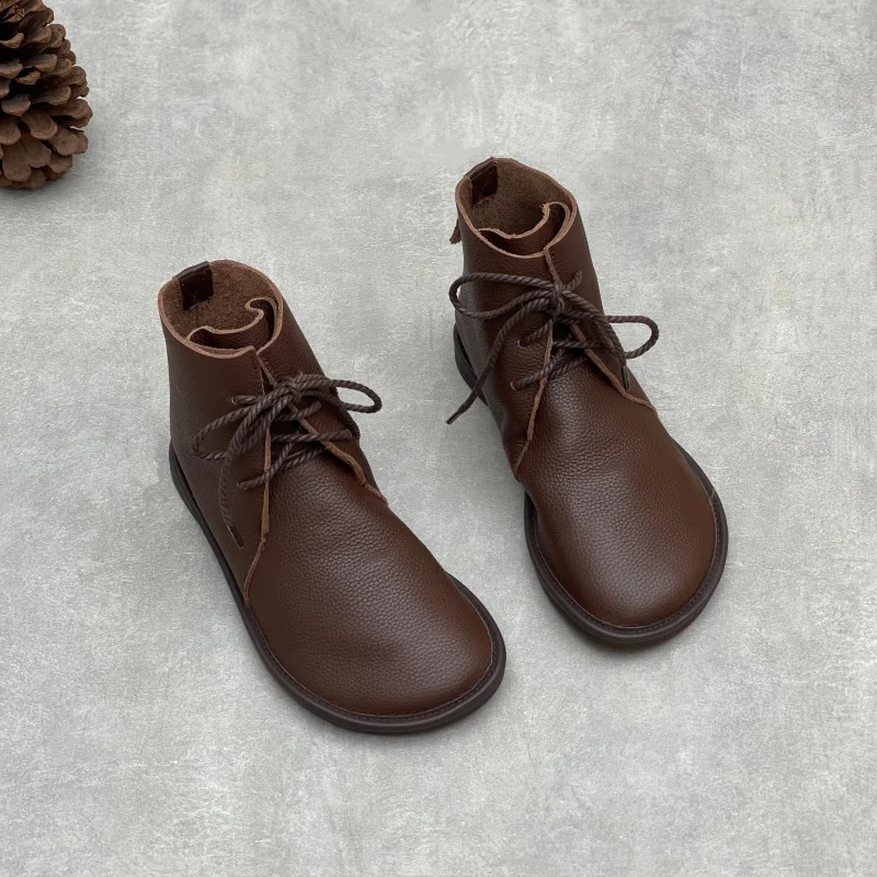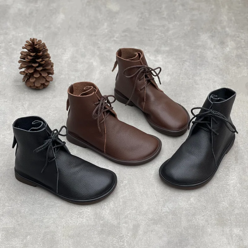 Johnature Retro Genuine Leather Short Boots 2025 New Casual Round Toe Versatile Solid Color Women's Soft Cowhide Soft Sole Shoes