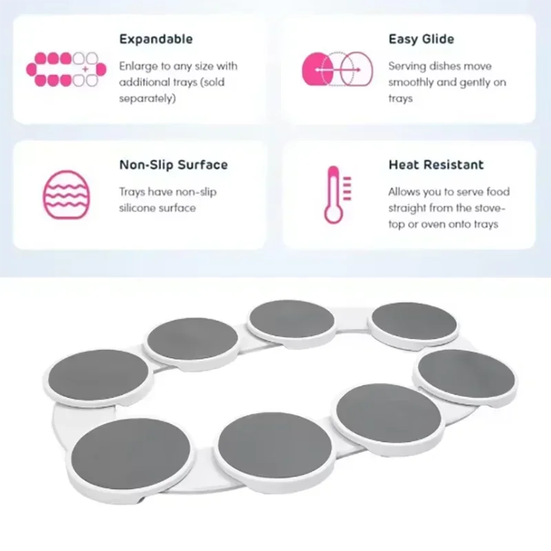 5. Heat Resistant: The sturdy tray on the rotating table can withstand high temperatures, making it effortless to move from oven to table. Its non slip surface keeps items in place and simplifies cleaning.