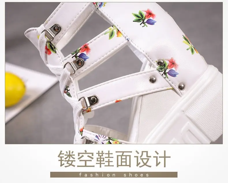 popular elements: flowers, muffin heel, cross straps, waterproof platform