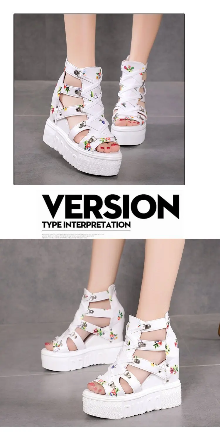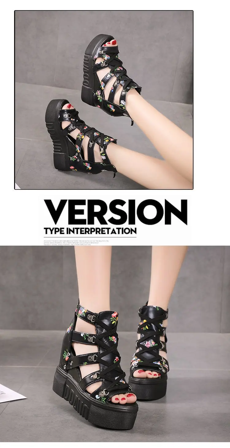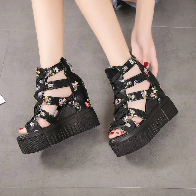 Ladies High-heel Women's Wedge Sandals Summer Thick-bottom Hollow Fish Mouth Roman Style Gladiator Casual Zipper Platform Shoe