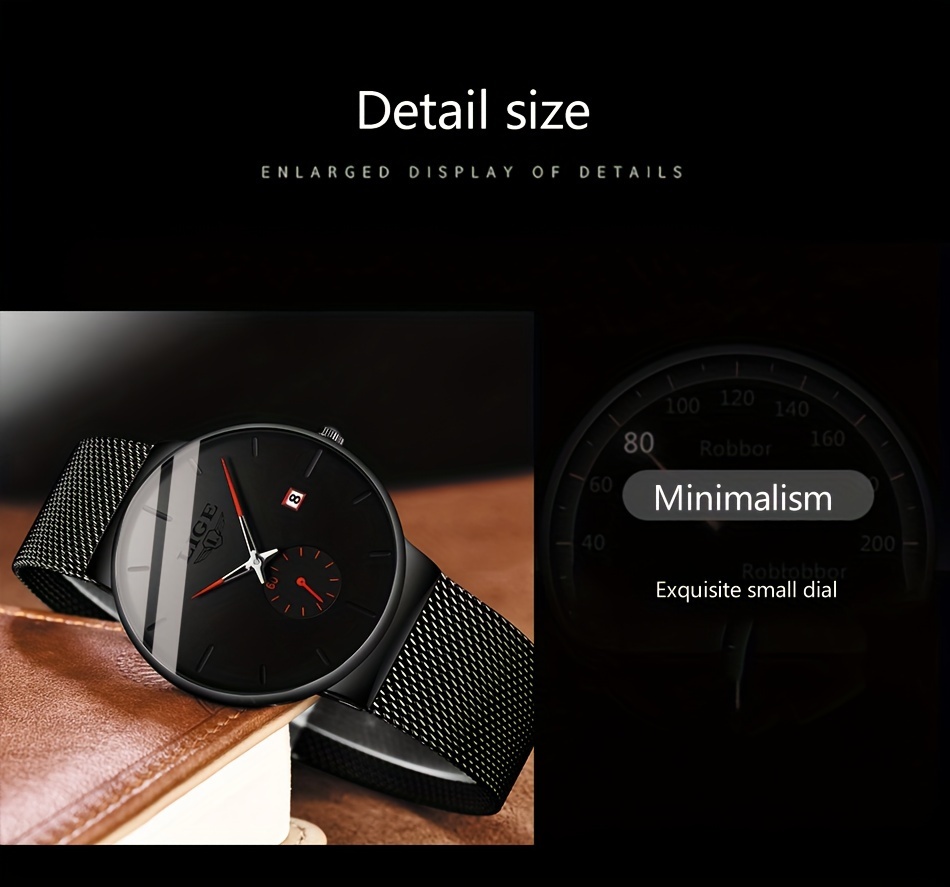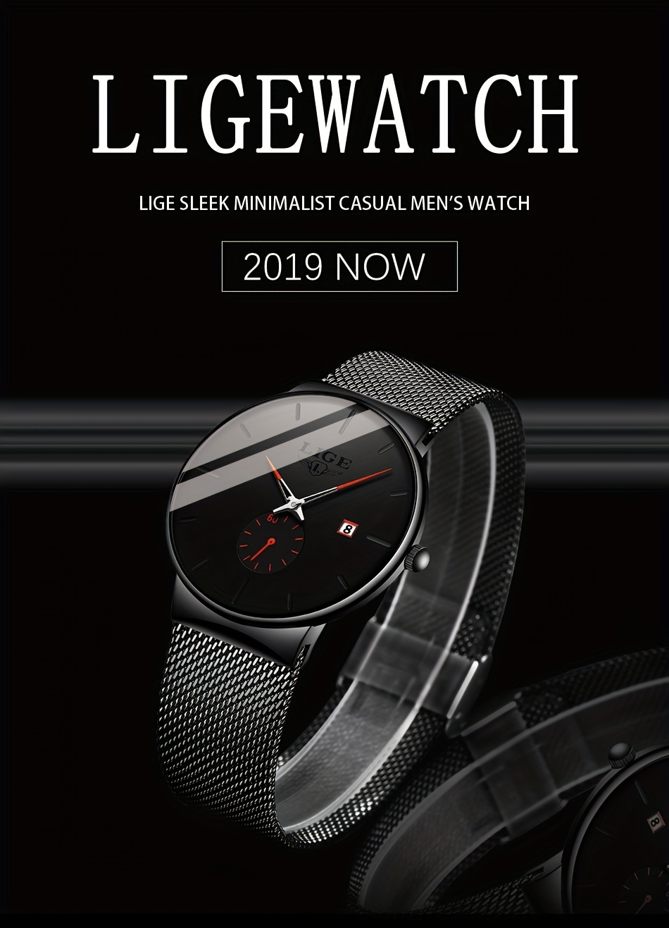 LIGE Minimalist Casual Men's Watch with Stainless Steel Mesh Belt. Leisure Fashion Men's Business Quartz Watches. Waterproof Calendar Wristwatch. Suitable for Gifts to Men.
