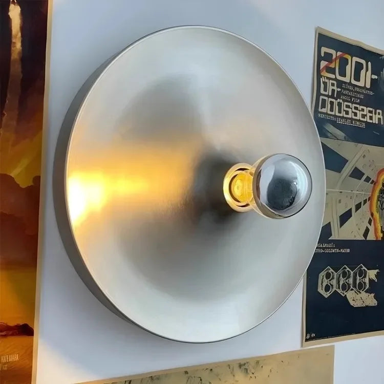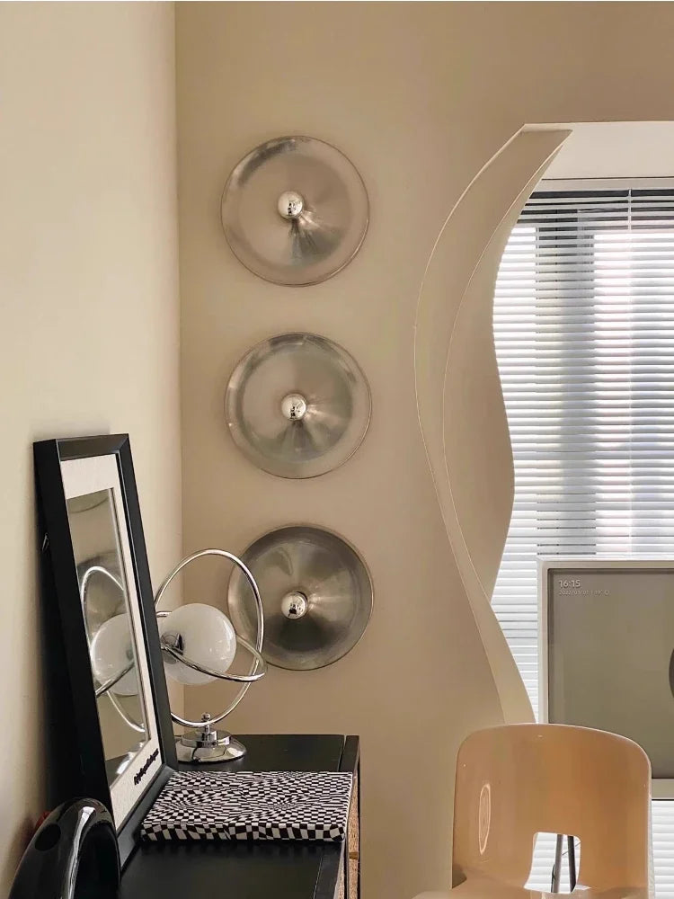 Medieval Bedside Wall Lamp Living Room Hallway Balcony Wall Lamp Bedroom Postmodern Flying Saucer Retro Metal Electroplated Lamp