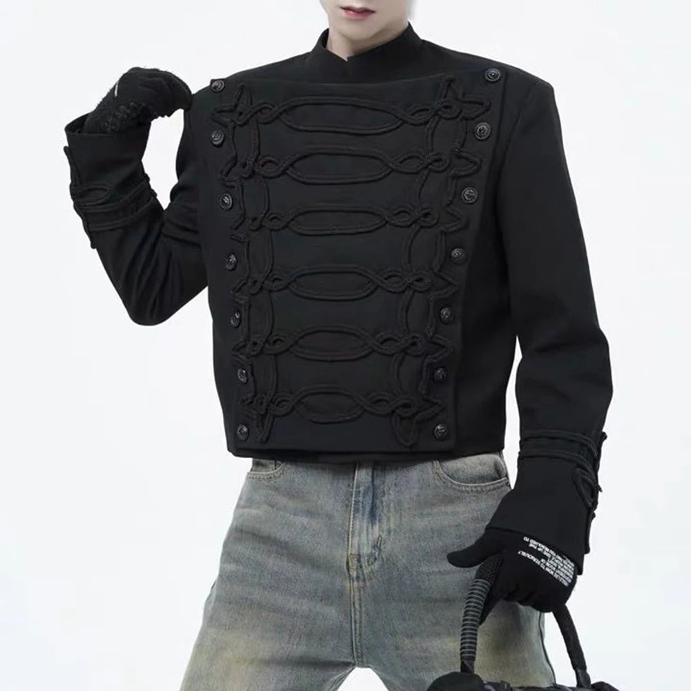 Mens Chinese Slim Suit Autumn Winter Genderless Fashion Trend Palace Style Solid Color Stand Collar Performance Jacket Unisex