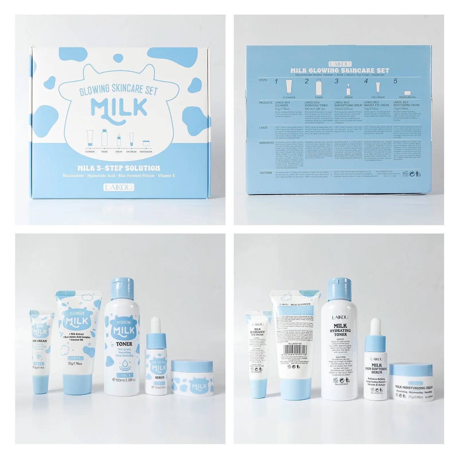 Milk Brightening 5-Piece Skincare Set - Hydrating & Brightening Includes Cleanser Toner Serum Eye Cream Moisturizer