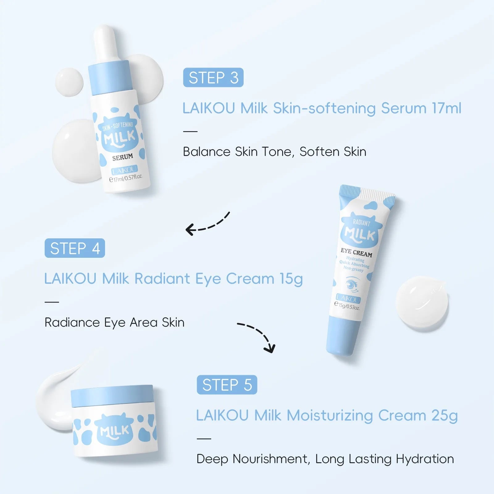 Revitalize your skin with our Milk Brightening 5-Piece Skincare Set, designed to hydrate and brighten for a glowing complexion.