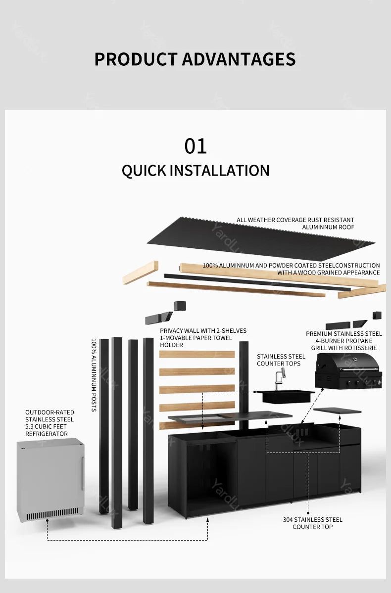 Upgrade your outdoor experience with the YardLux Open-Air Kitchen Kit – Where Modern Design Meets Outdoor Cooking Excellence!