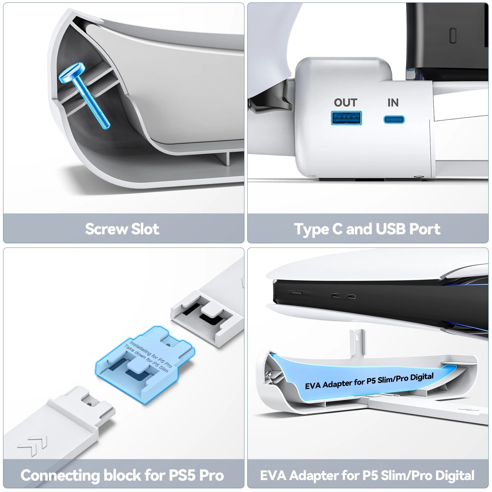 OIVO for PS5 Slim/PS5 Pro Console Horizontal Cooling Stand PS5 Slim Controller Charger for Playstation 5 Slim Disc & Digital Editions