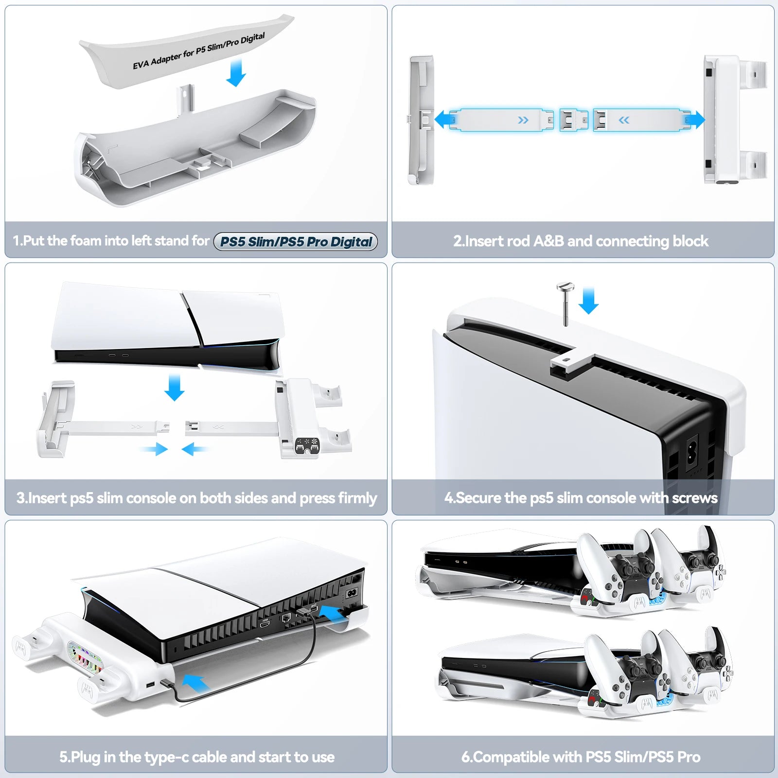 OIVO for PS5 Slim/PS5 Pro Console Horizontal Stand PS5 Slim Controller Charger for Playstation 5 Slim Disc & Digital Editions