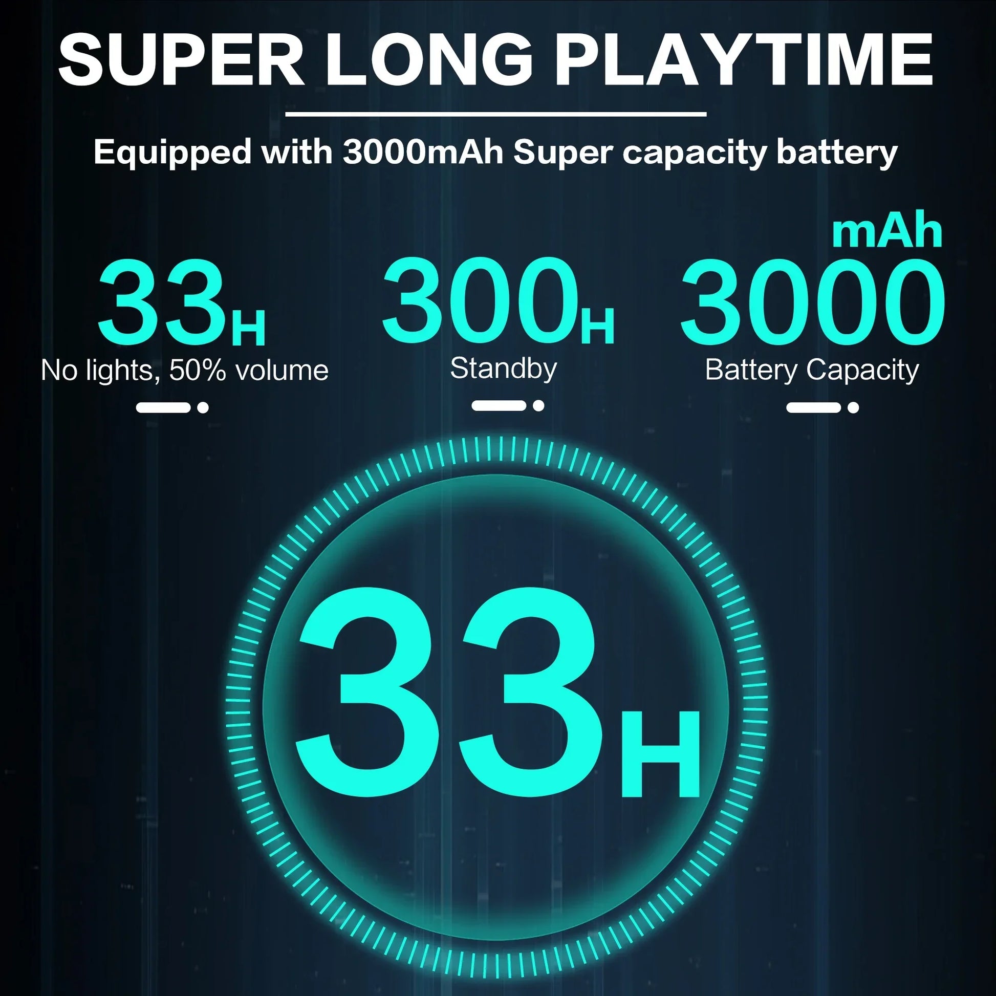 With a 3000mAh battery capacity, you can enjoy extended music playback, ensuring endless hours of music enjoyment. Whether it's outdoor camping, picnics, or indoor gatherings, it provides unparalleled music experience.