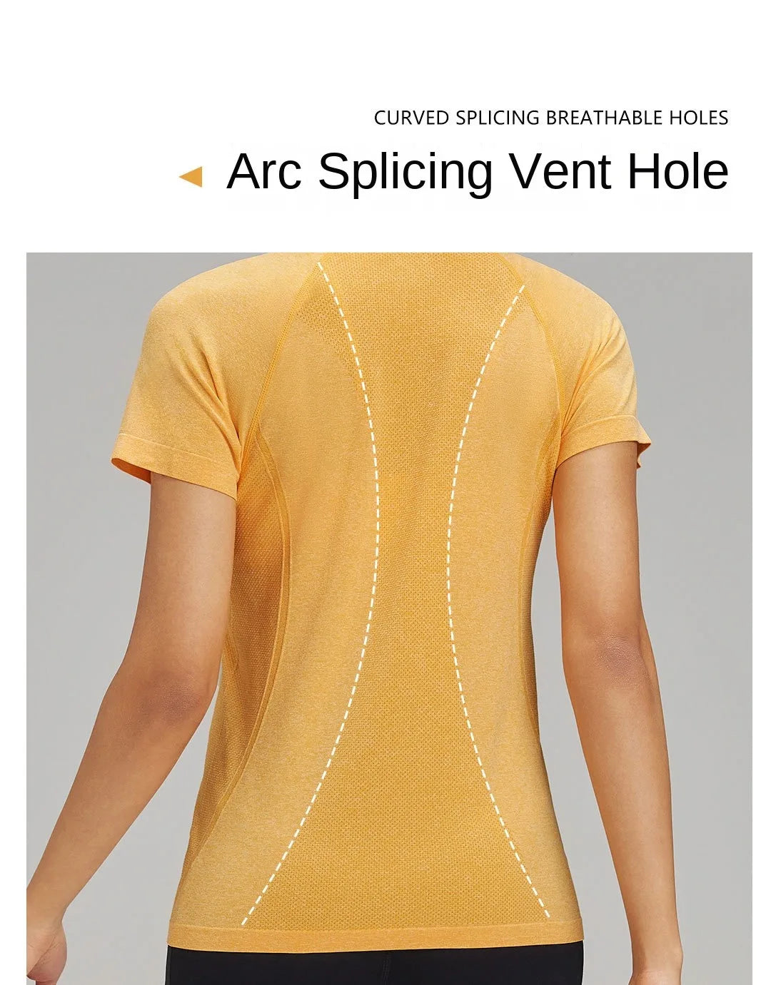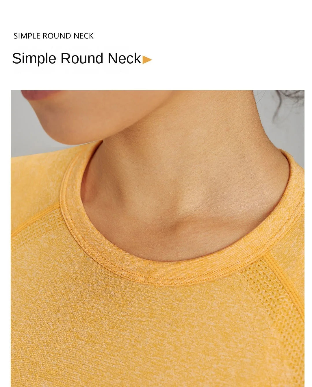 Outdoor yoga T-shirt, quick drying solid color sportswear, casual running, quick drying fitness training, short sleeved women