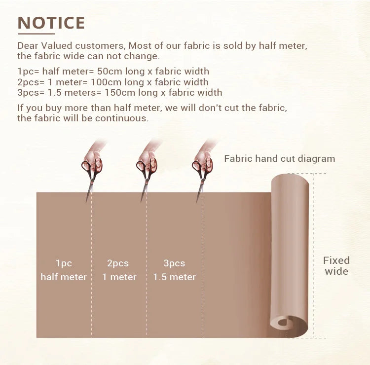 If you buy 1meter or more, we will notย cut the fabric, the fabric will be continuous.