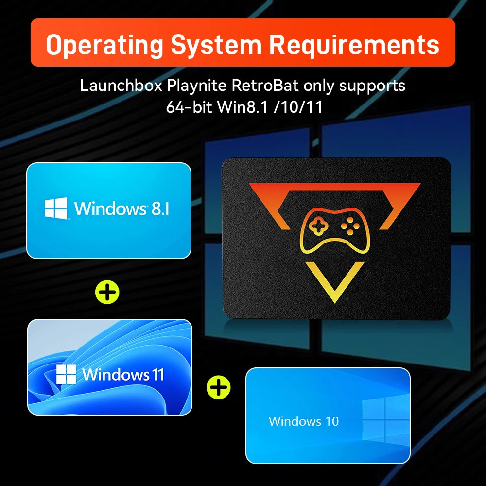 ๐Three game front ends,Launchbox/Retrobat/Playnite OS support 64-bit windows 8.1 and above.