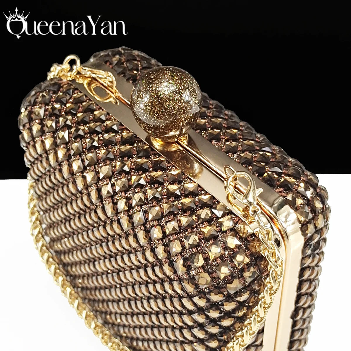Queena Yan Italian Design Rhinestone Luxury Green Colour Pointed Toe Shoe & Bag Set Women's High Heels for Parties High Quality