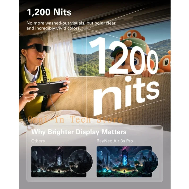 [Worldโs Brightest AR Glasses โ 1,200 Nits] RayNeo Air 3s Pro smart AR glasses โ now with an upgraded 1,200 nits to-eye brightness, the highest in any AR glasses today. Even the faintest stars in the movie are visible instead of pure black, while others can't.