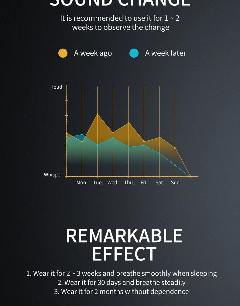 1. Wear it for 2-3 weeks, the breathing will be smooth when sleeping, and the frequency of snoring will be reduced a lot