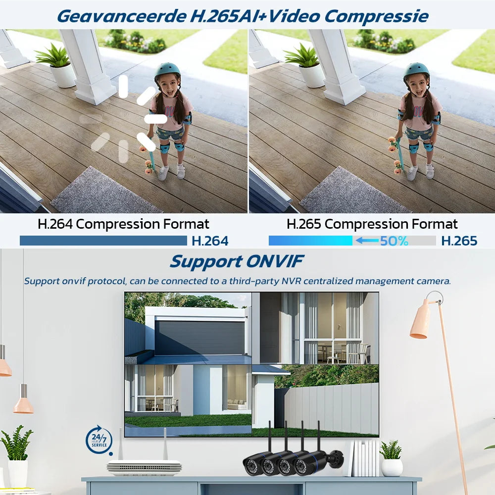 Support Onvif Protocol & H.265AI + Video Compressie