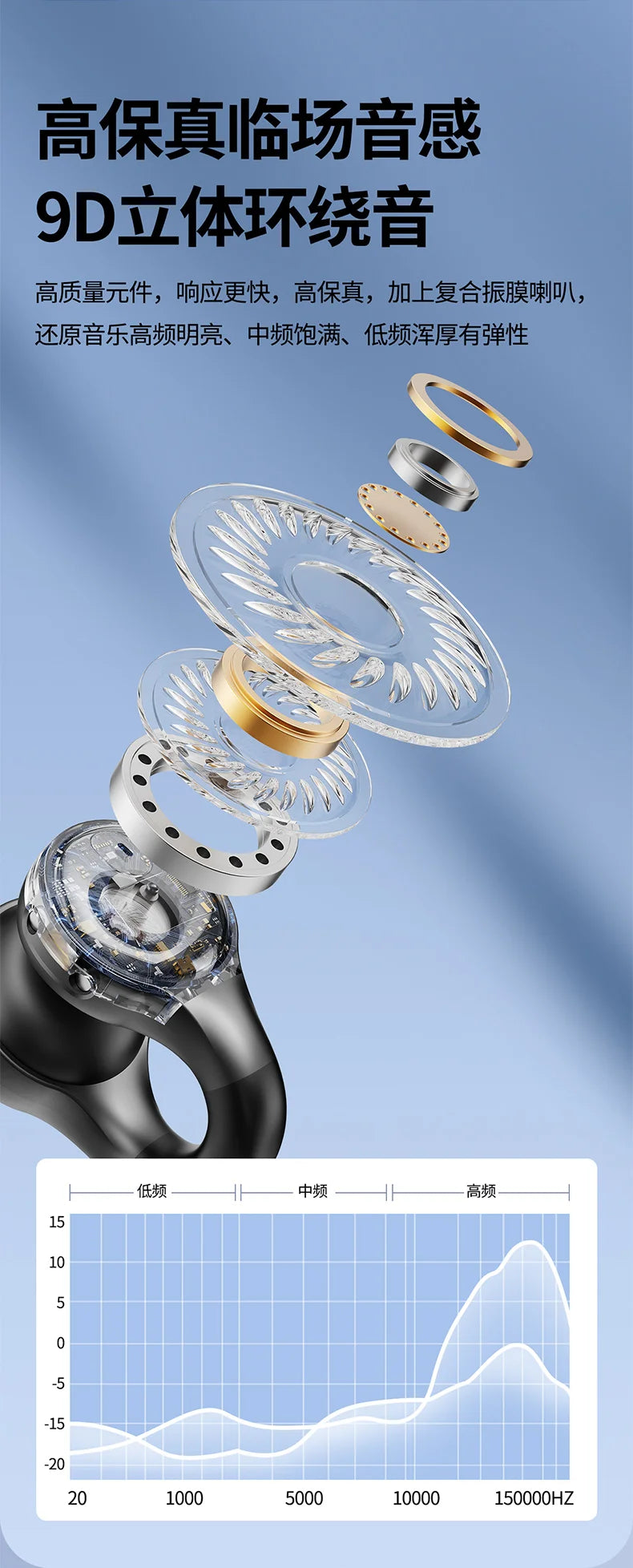 Wireless Headphones Bluetooth Headset With Mic Handsfree Noise Canceling Earphones Clip Ear Music Sports Gaming Earplug