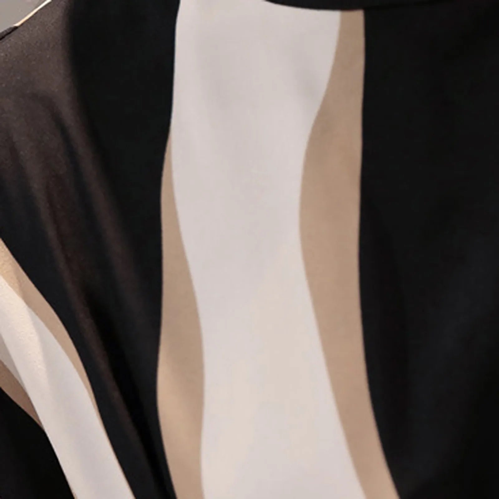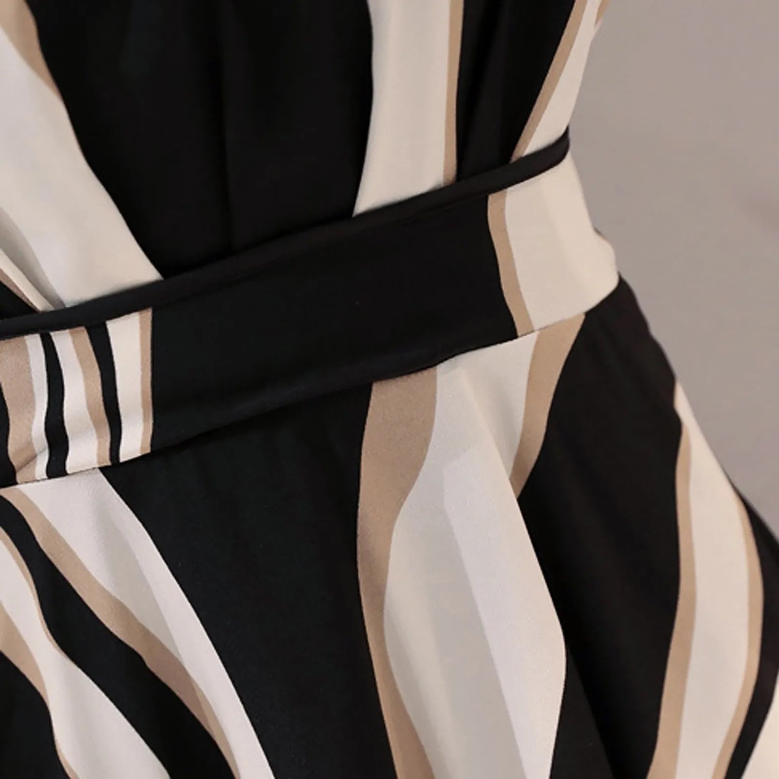 Women Dress Summer Vintage Printed Dress Elegant Fashion Ladies Business Dresses Belt O-Neck Short Sleeve Knee Length Dress