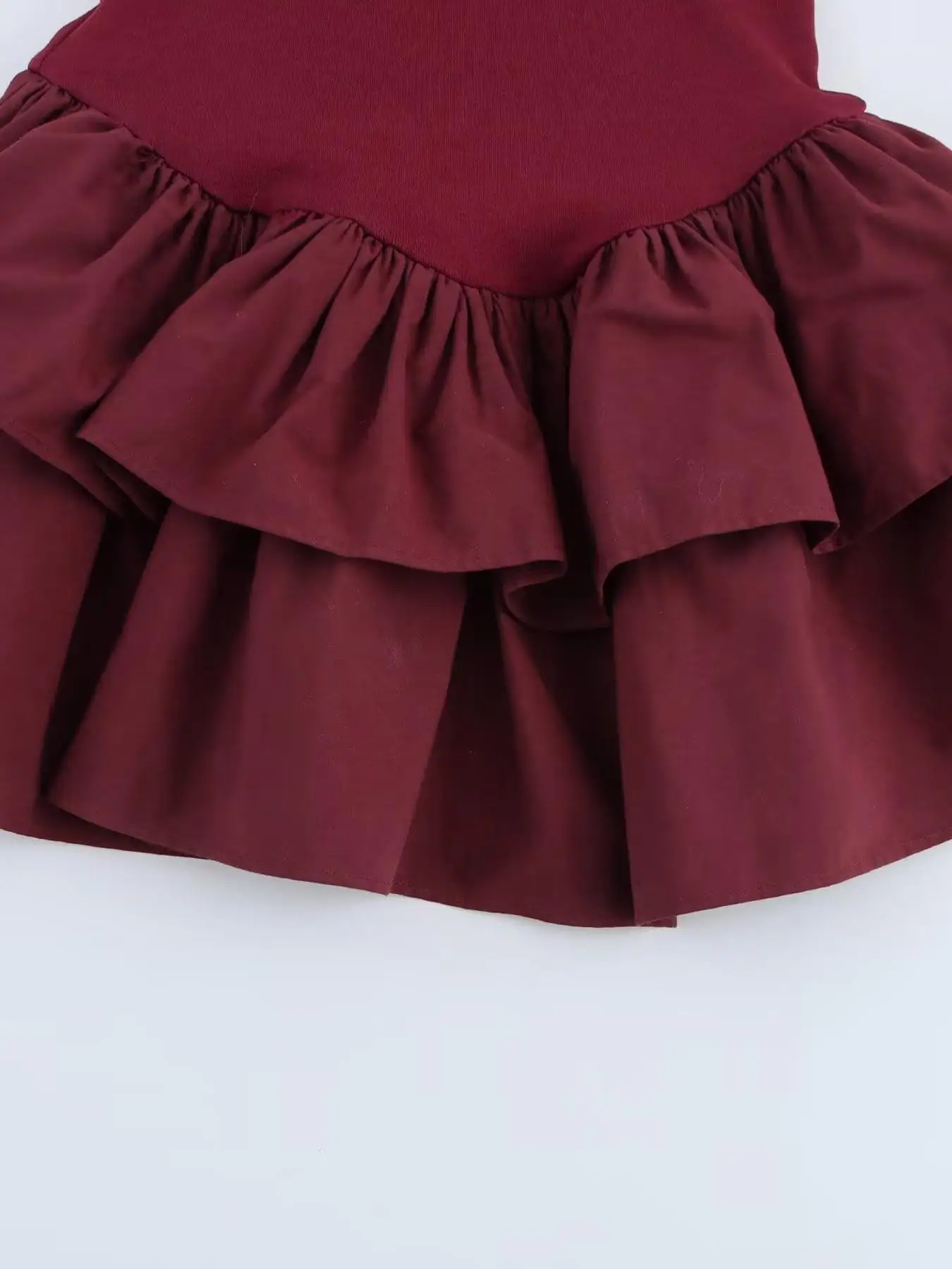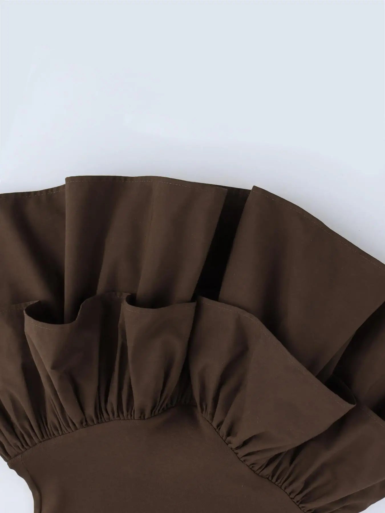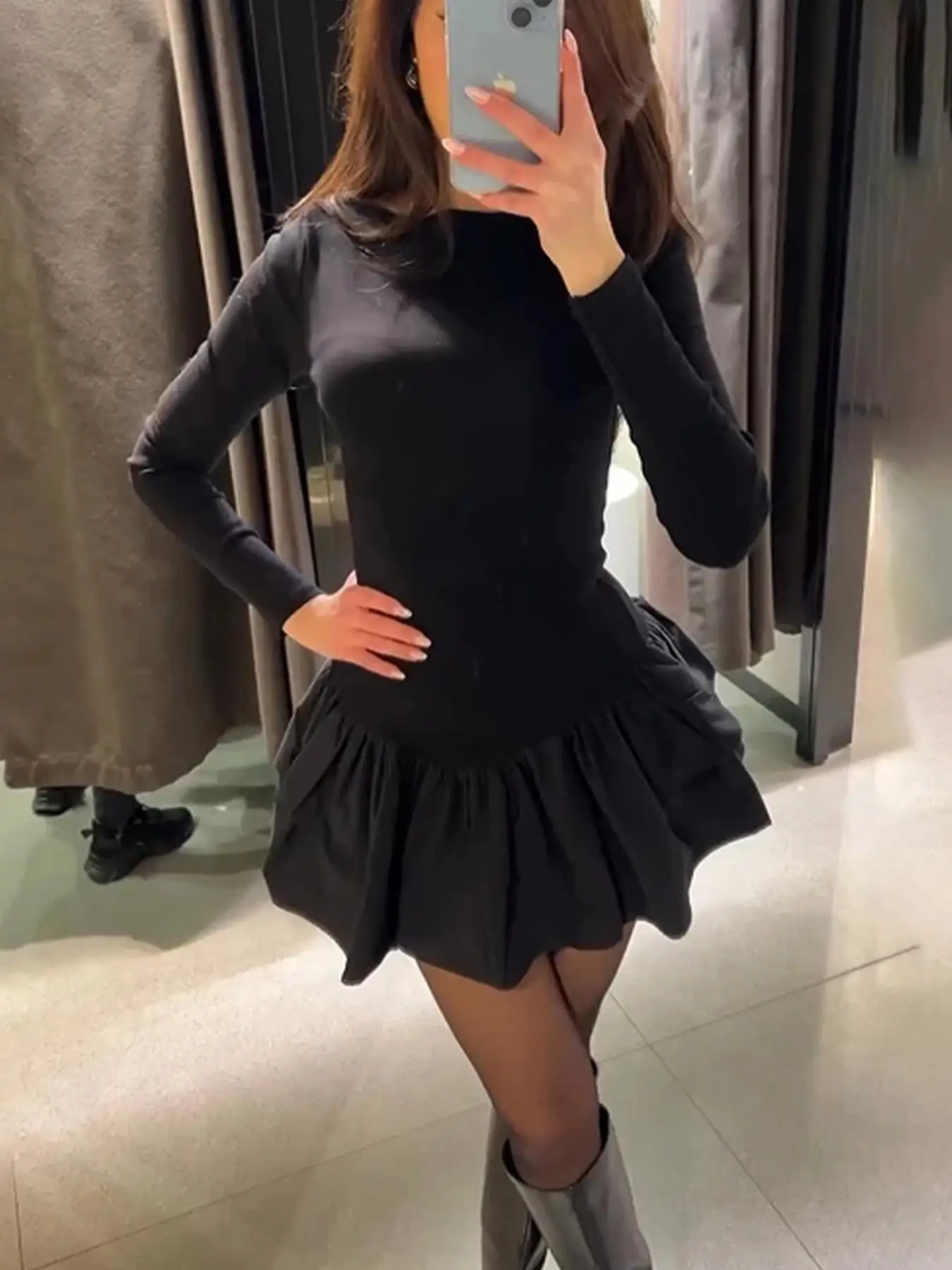 Women Fashion Solid Tierred Ruffle A-Line Dress Spring Elegant O Neck Slim Fit Mini Dress Autumn Long Sleeve Simple Boho Dresses