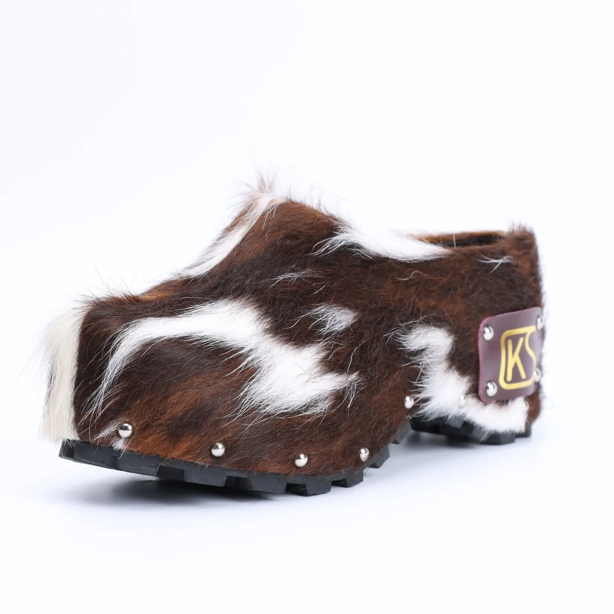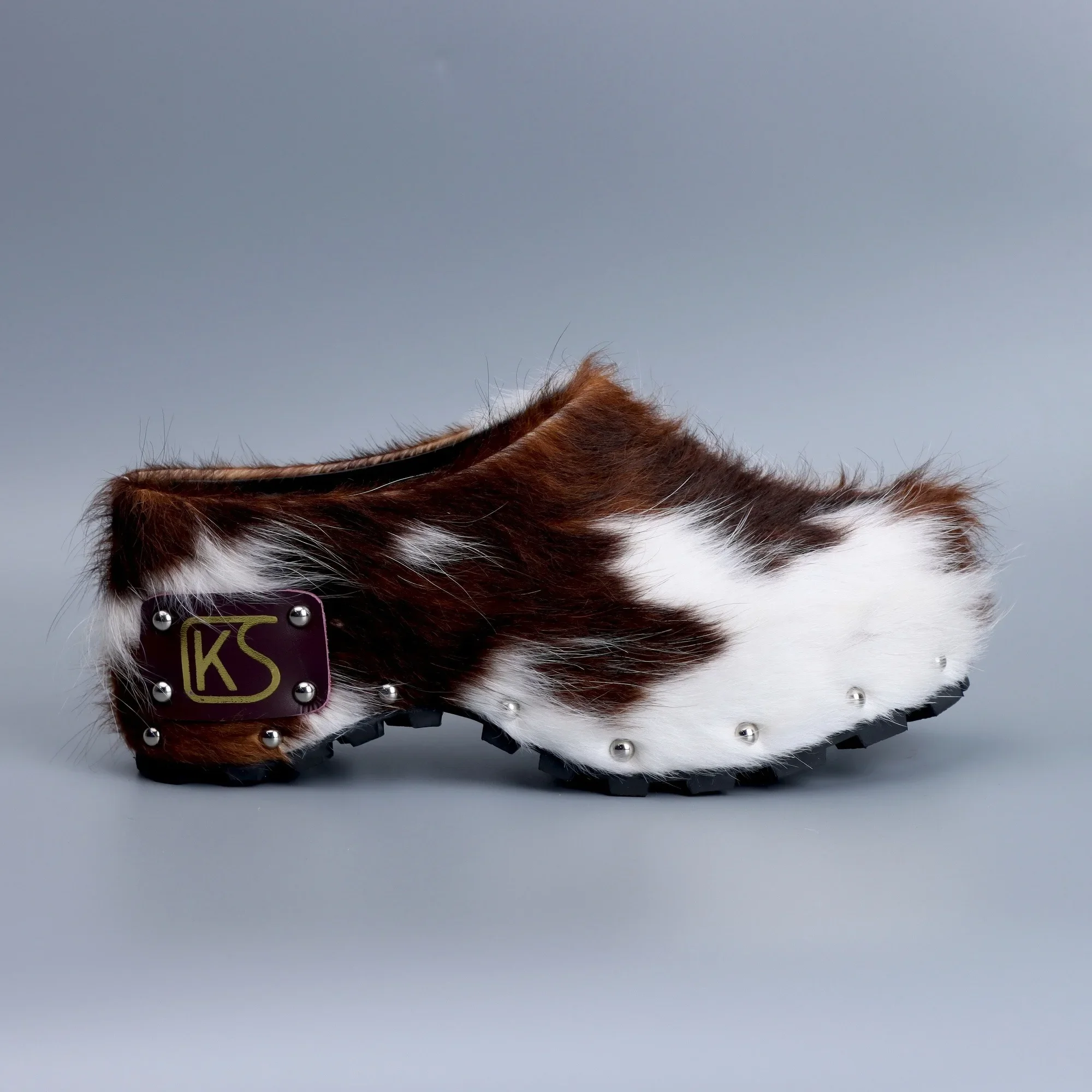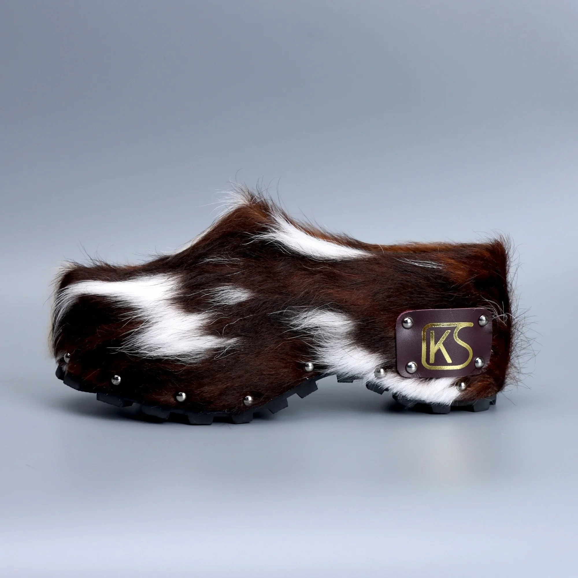 The upper is made from natural cow fur with a unique texture that makes each pair a natural work of art.