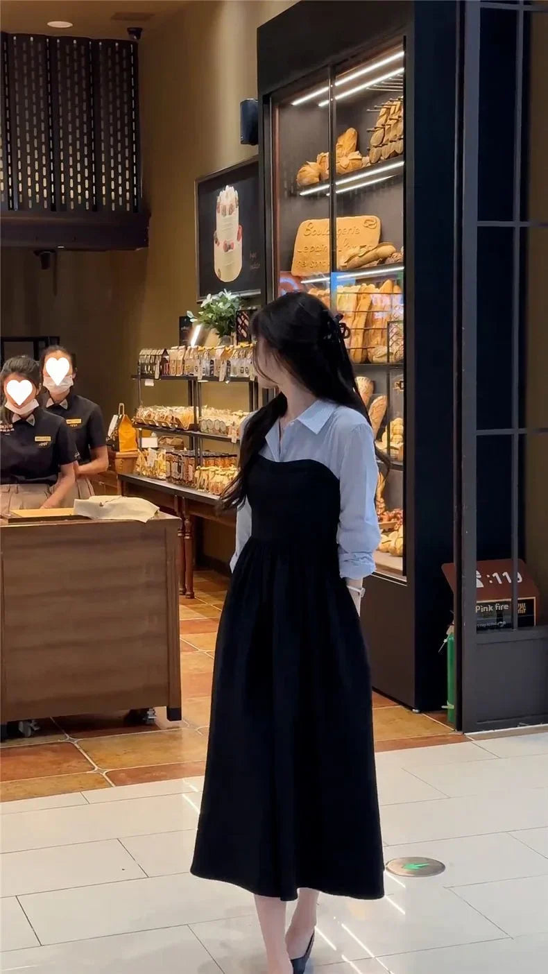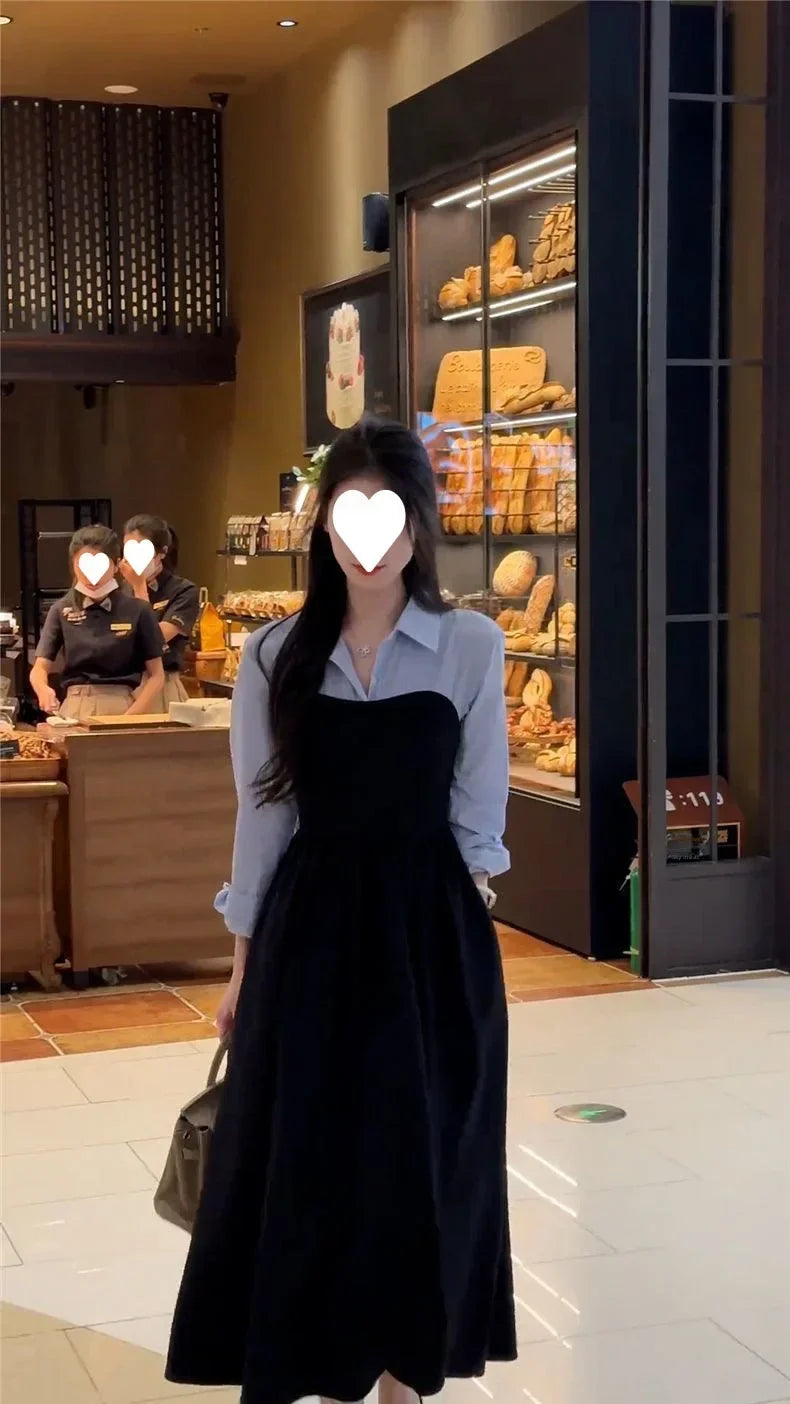 Women's Fashion Two-piece Illusionshirt Black Long Sleeve Dress High-end Feel Matching Set