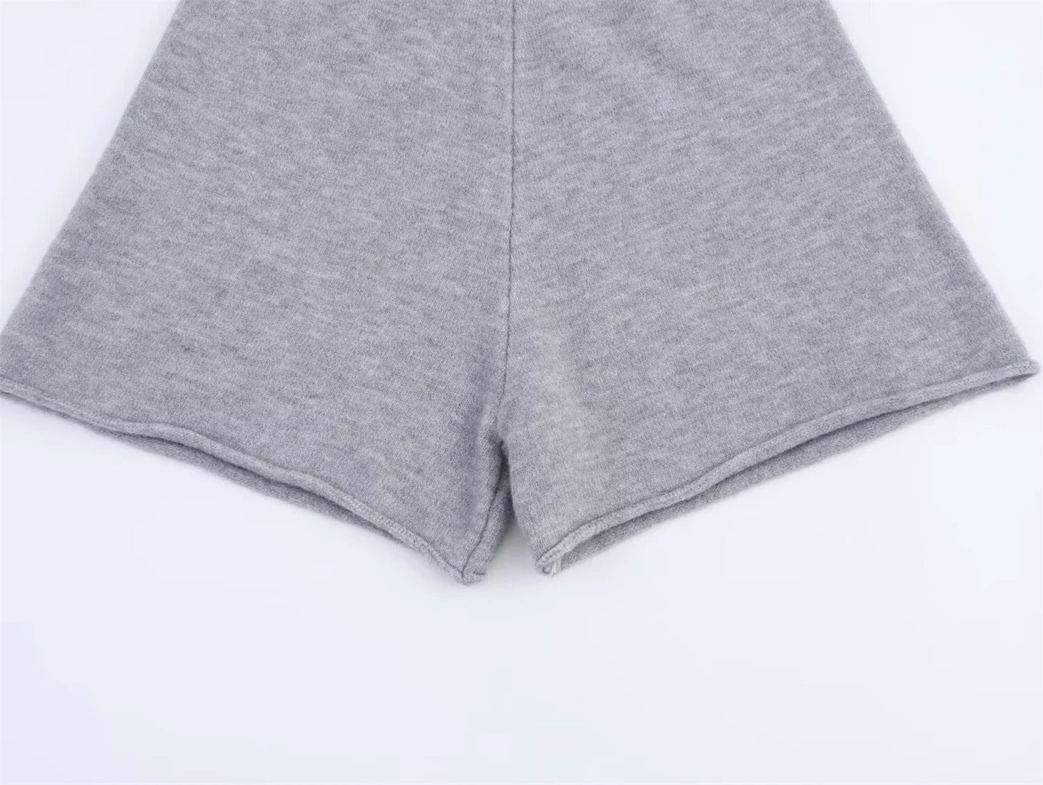 Women's Fashion V-neck Sweater Top And Matching Knitted Shorts New Style Short Pantsuit for Women